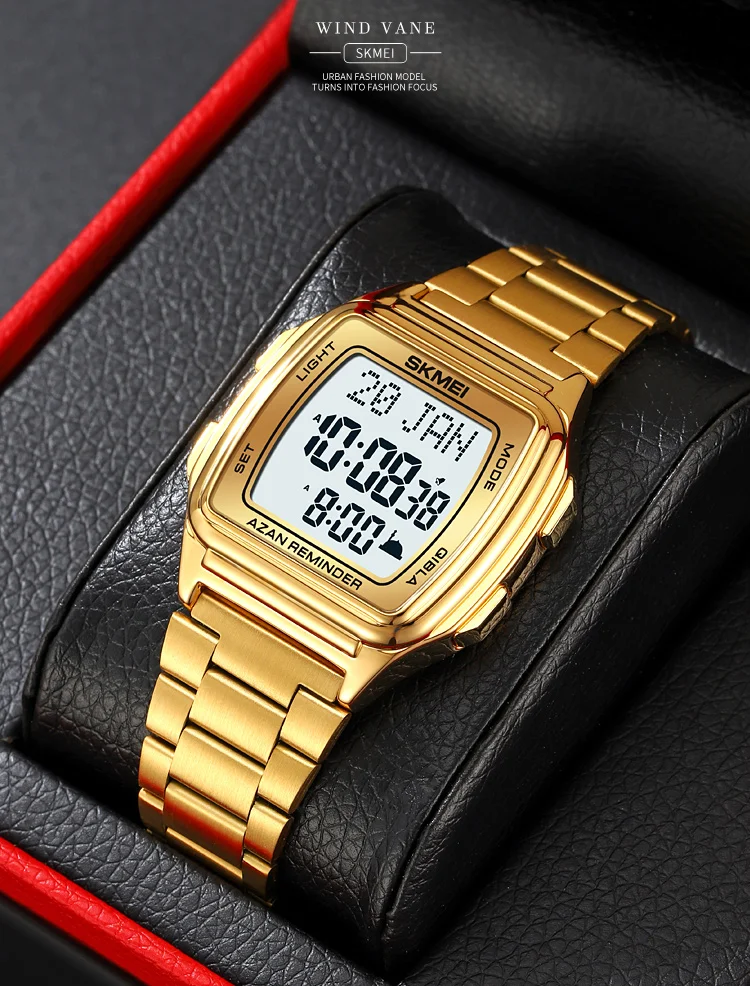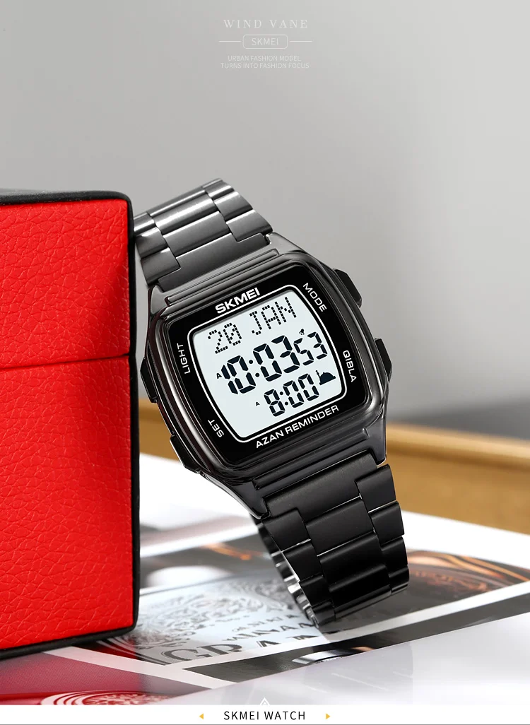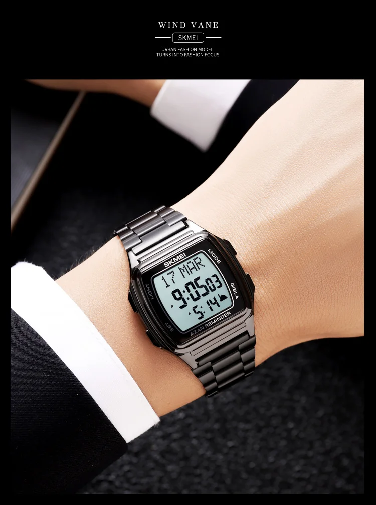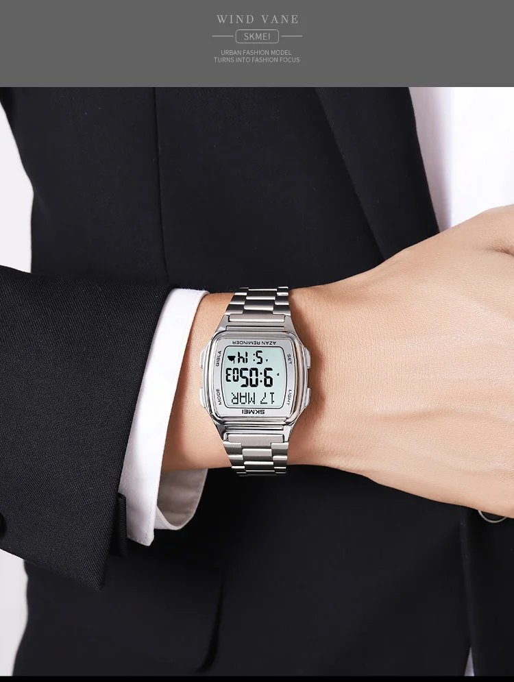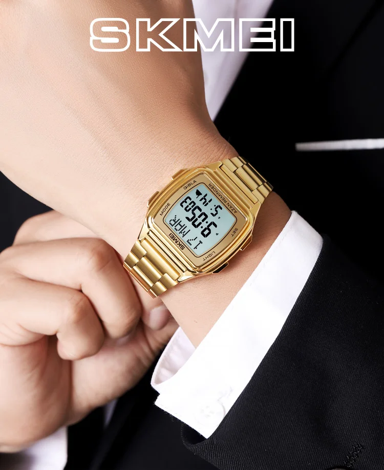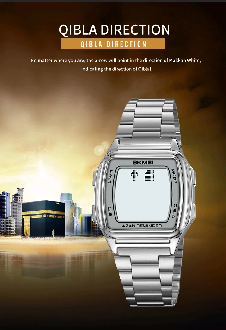 SKMEI Muslim Digital Watch Led Light Display Watches Pilgrimage Time Reminder Qi