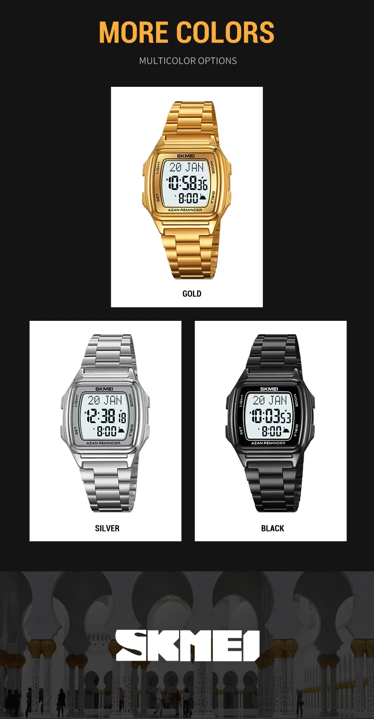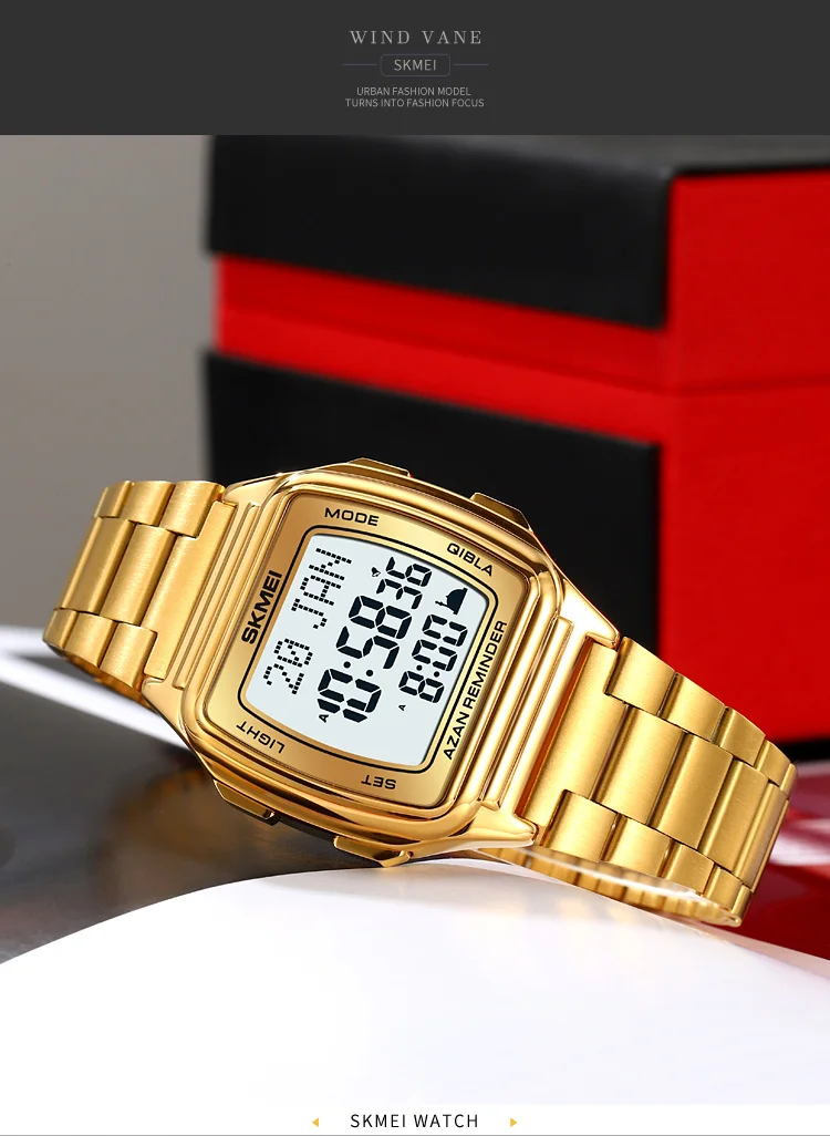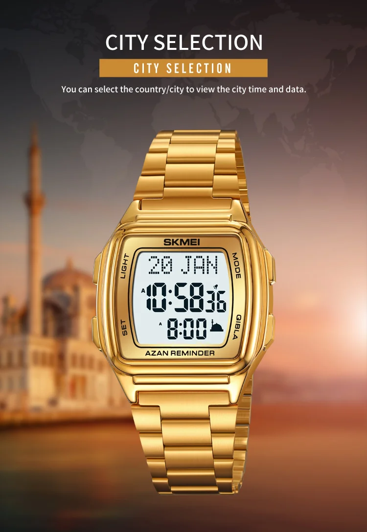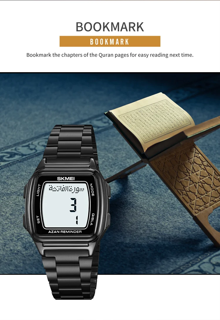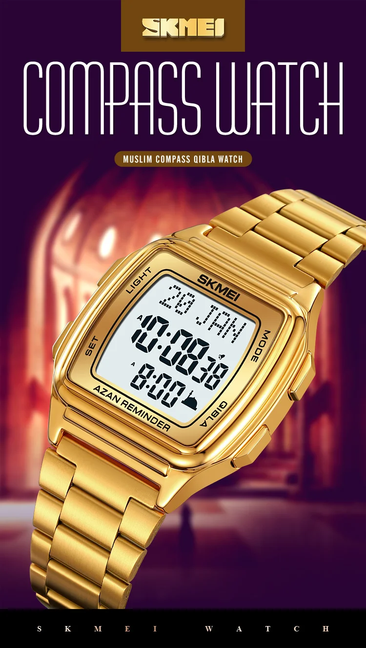 SKMEI Muslim Digital Watch Led Light Display Watches Pilgrimage Time Reminder Qi