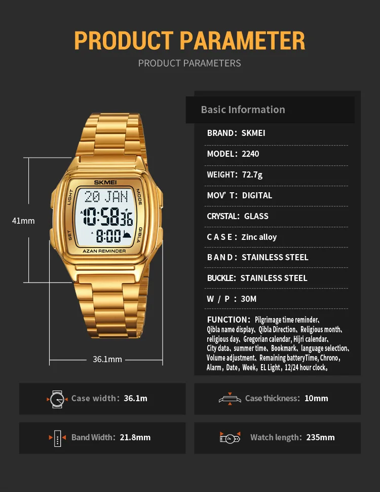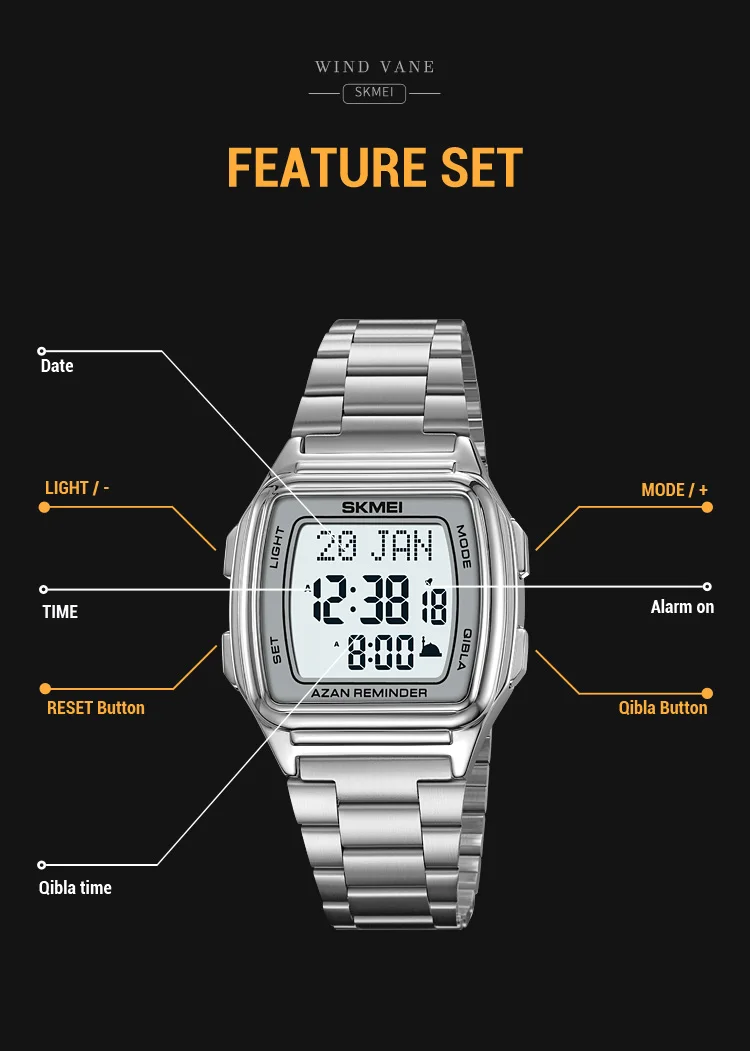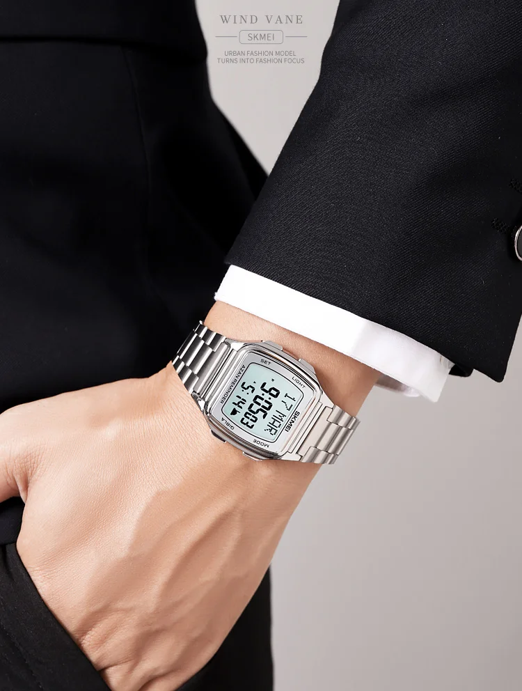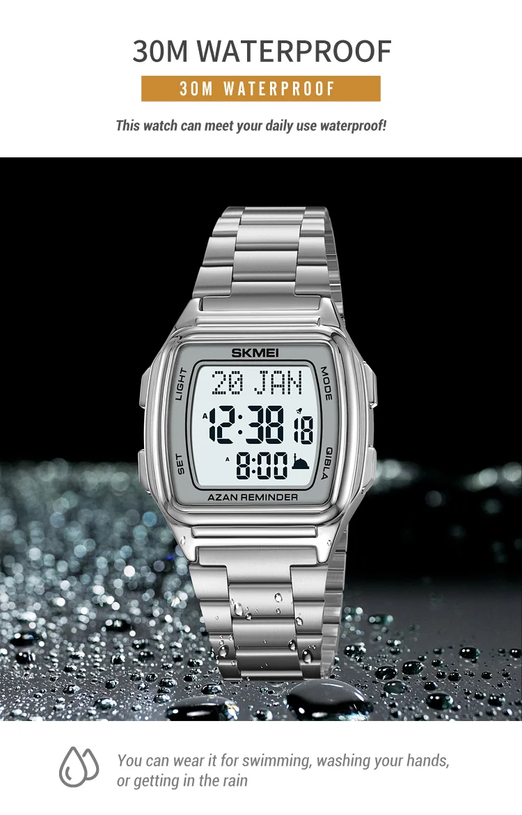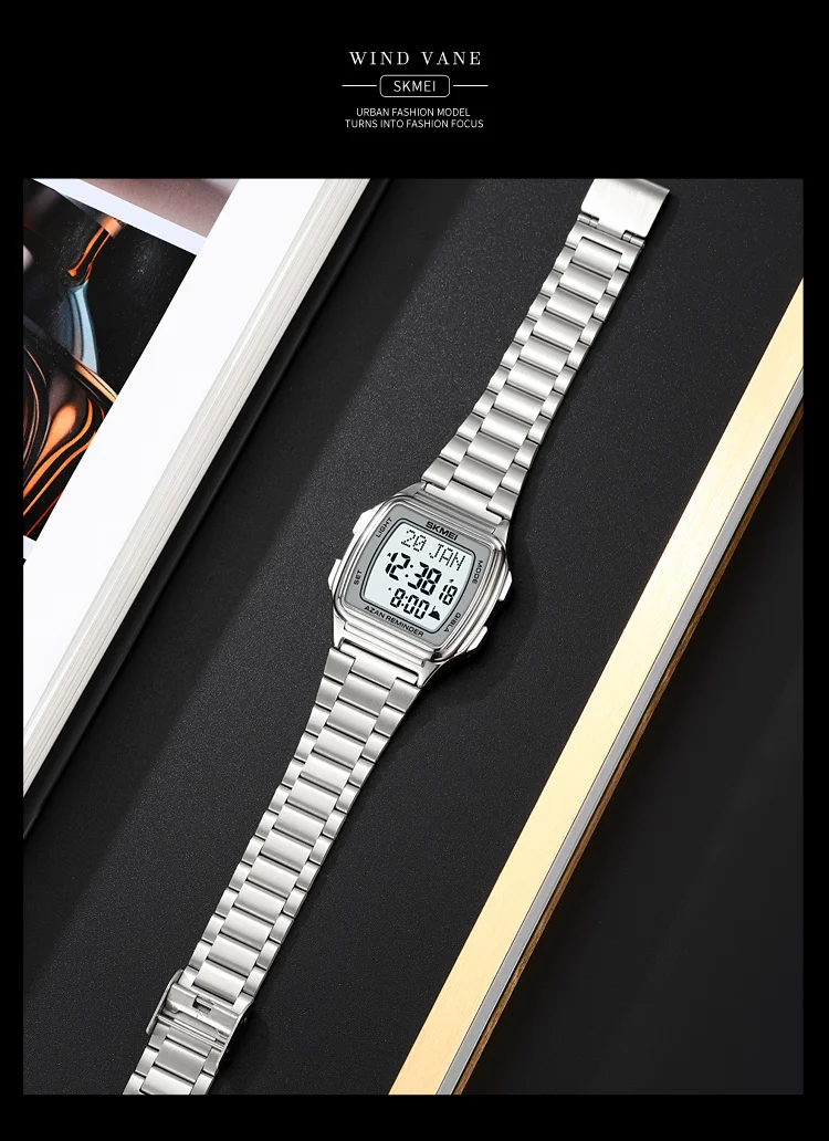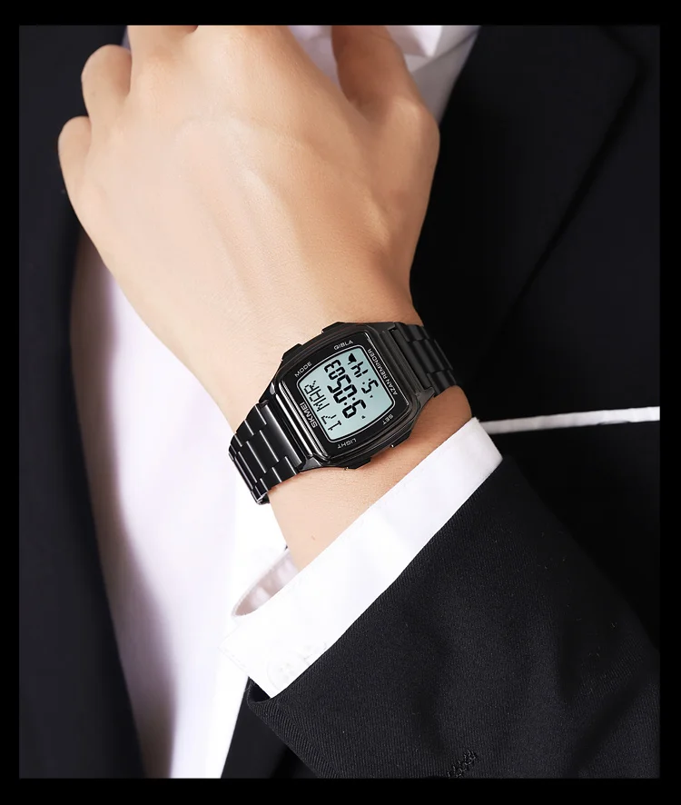 SKMEI Muslim Digital Watch Led Light Display Watches Pilgrimage Time Reminder Qi
